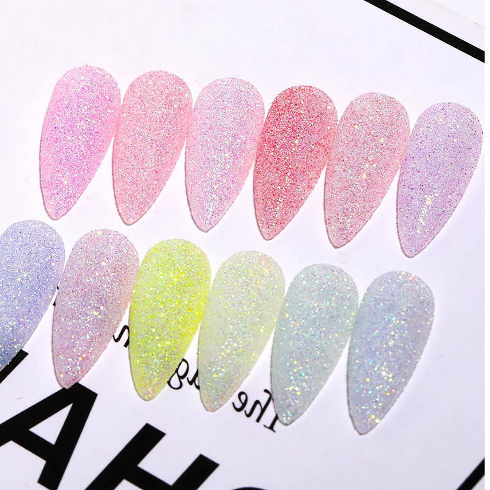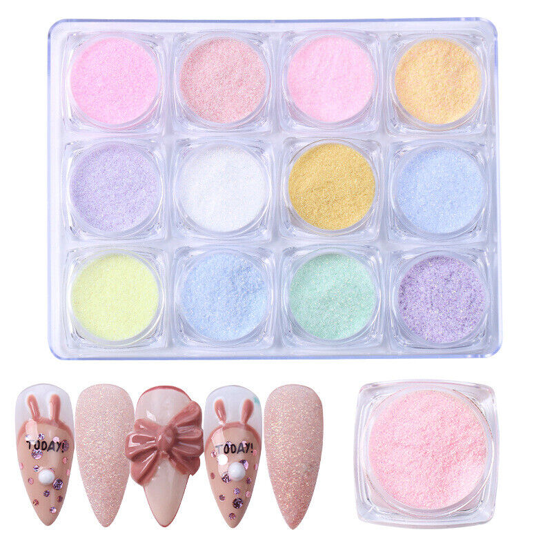 - The set includes 12 colours of candy glitter powder to create a special sugar matte effect on nails!