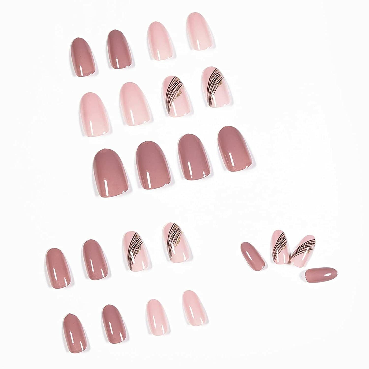 24pcs Fake Nails Reusable Stick On Nails Press on Full Cover False Nail Tips