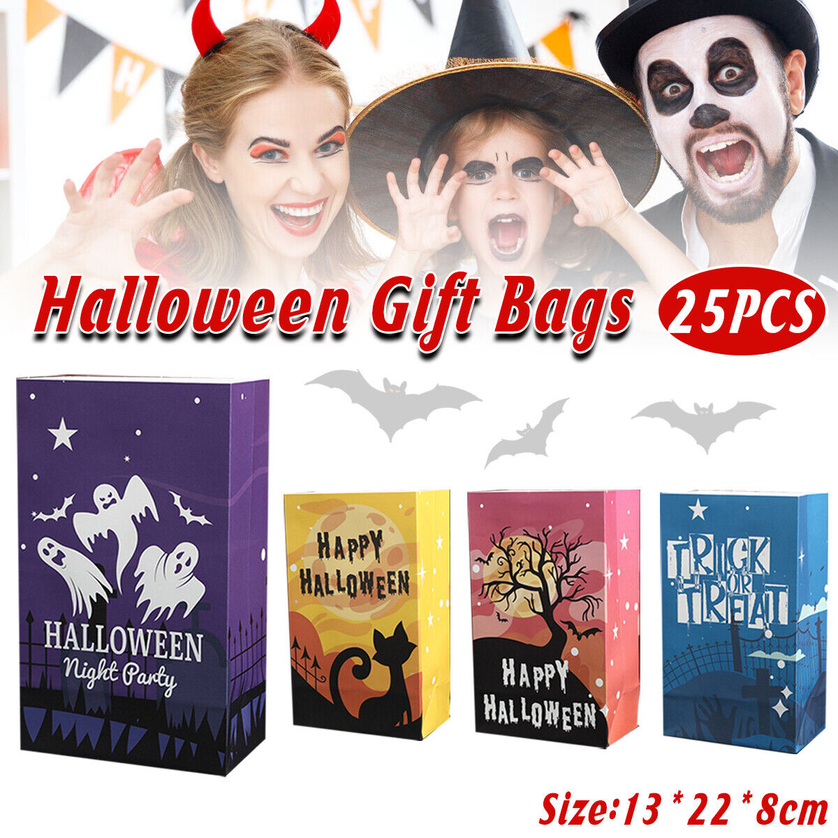25pcs Halloween Kraft Paper Treat Bags Creative Candy Flat Pockets for Party