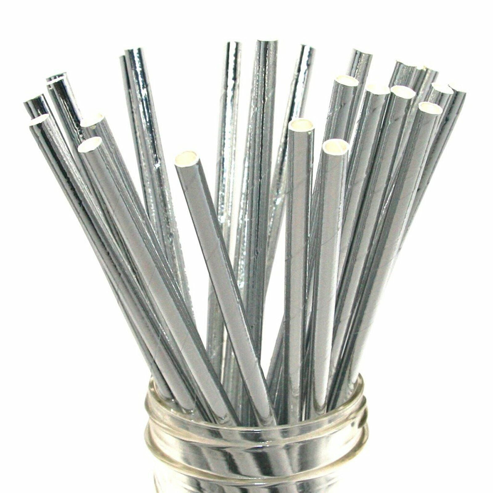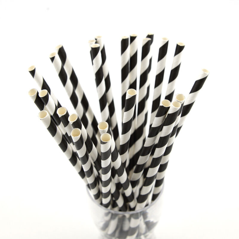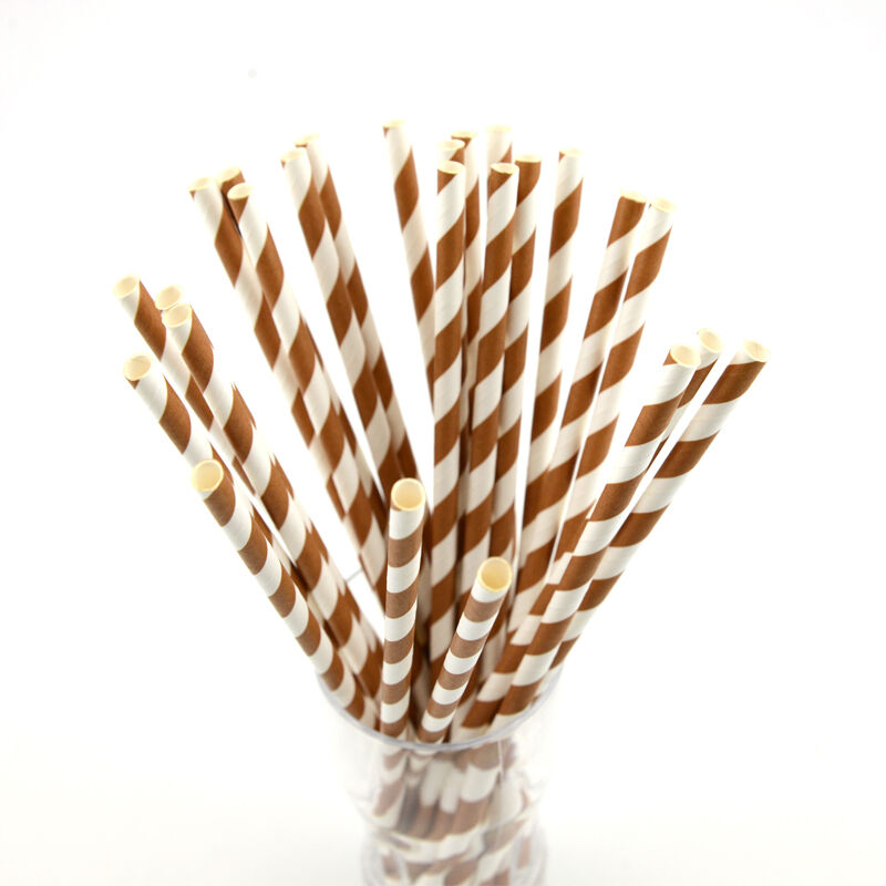 25X Colourful Paper Drinking Straws Straw FOIL Metallic Striped Party Wedding DI
