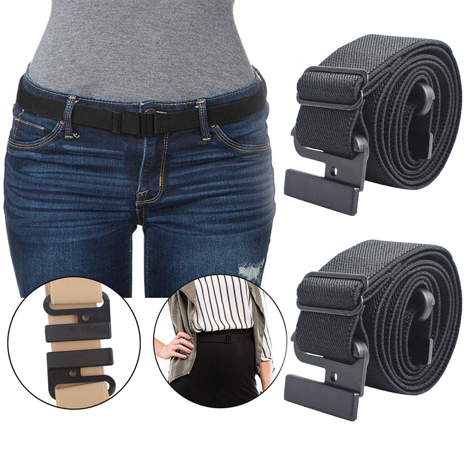 2PCS Buckle-free Elastic Invisible Belt for Jeans No Bulge No Hassle No Non-Slip