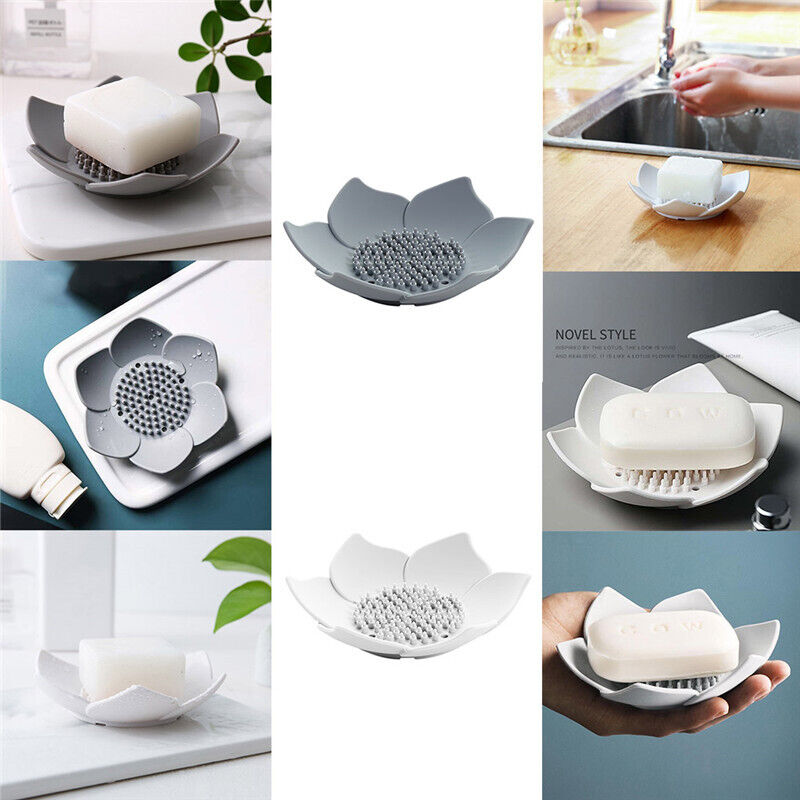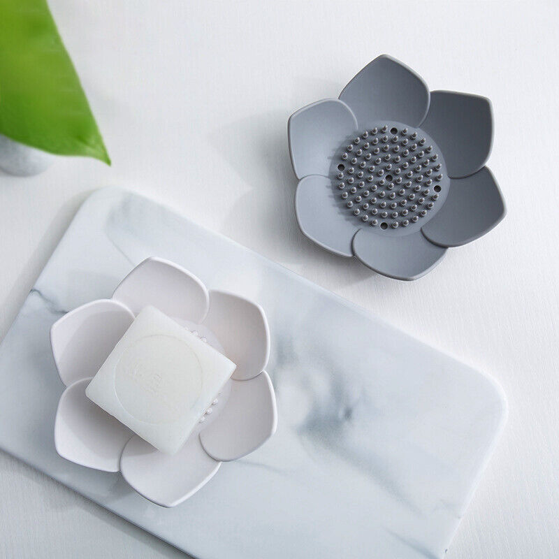 2pcs Creative Lotus Silicone Soap Tray Drain Lotus Soap Box Soap Rack Shelf AU