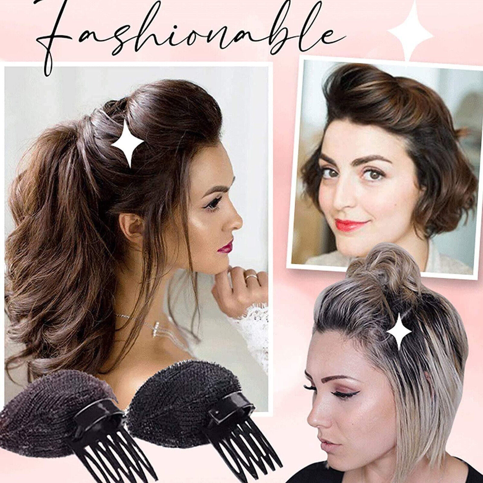 2PCS DIY Invisible Hair Volume Increase Fluffy Puff Sponge Pad Clip Comb Girls