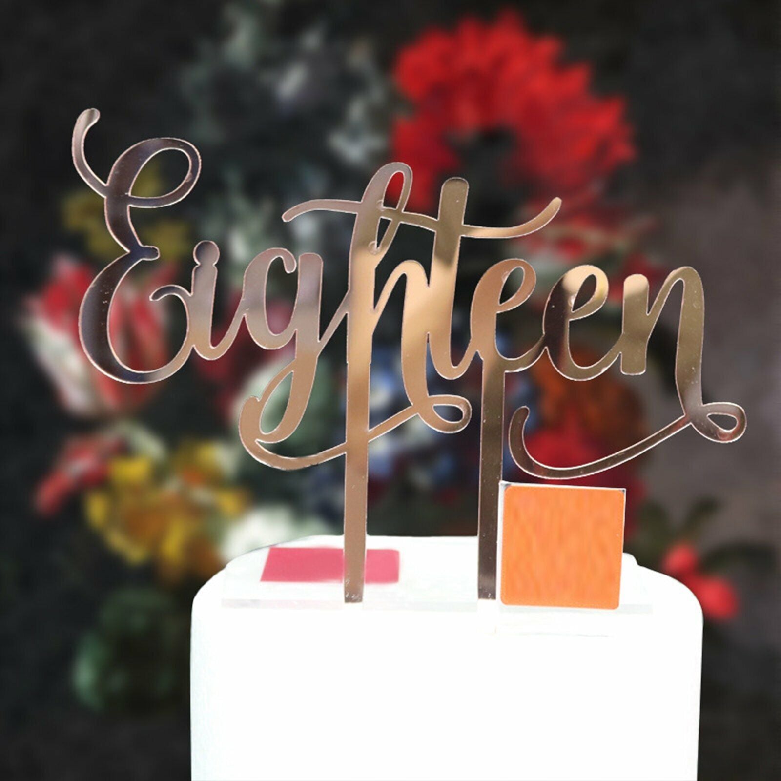 2pcs Eighteen18 Birthday Cake Topper Party Decor Mirror Rose Gold Acrylic 18th