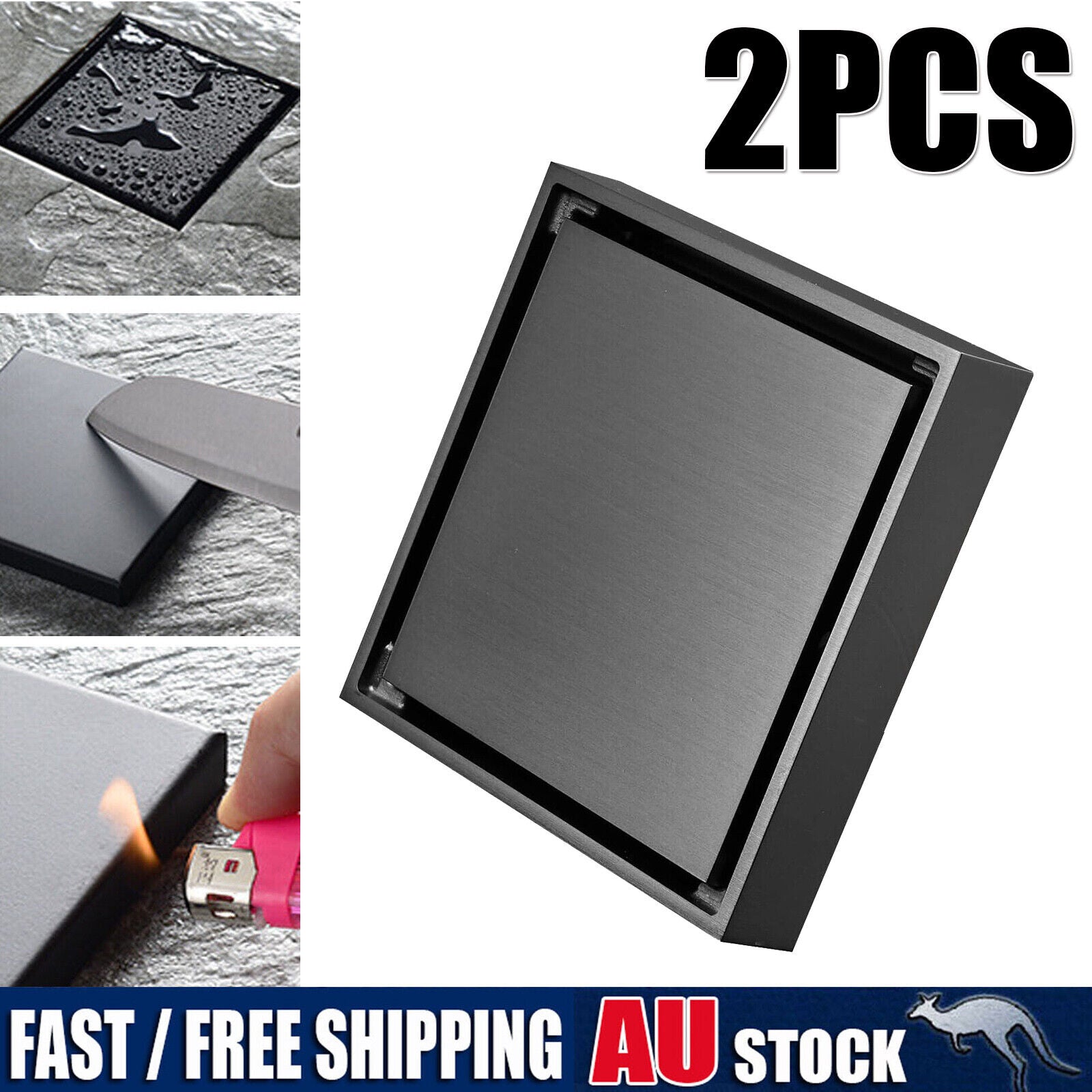 2X 100mm Tile Insert Square Smart Floor Grate Waste Drain Black Shower Bathroom