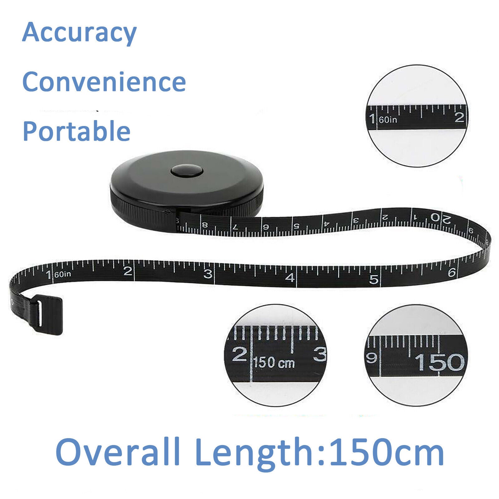 2X Soft Tape Measuring Range & 2X Black 1.5m Body Tailor Tape Ruler  Retractable
