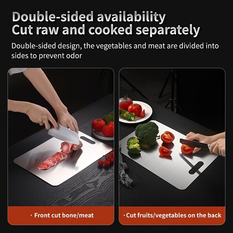 304 Steel Cutting Board Double-Sided Chopping Boards for Kitchen Camping 34x23cm