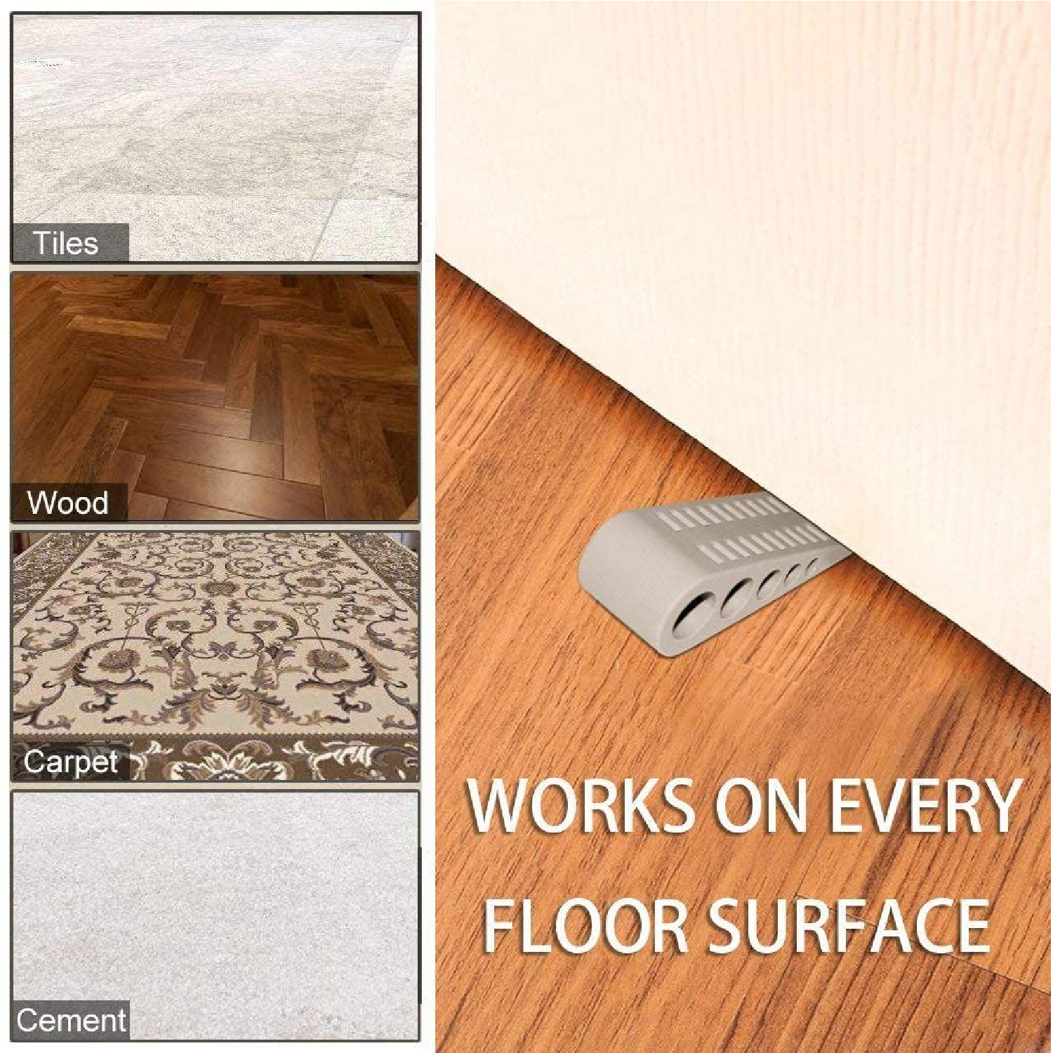 The stopper will effectively keep open any door on linoleum, tile, stone, wood, carpet, cement, asphalt, and others.