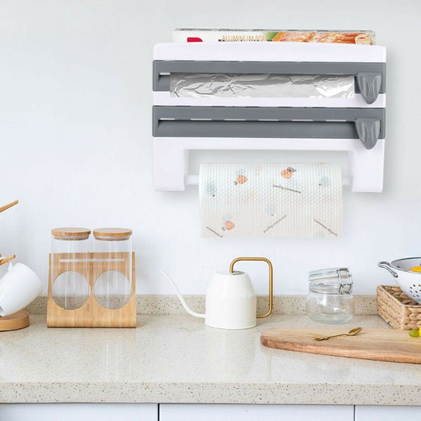 4in1 Kitchen Wrap Organizer Foil Cling Film Towel Holder Wall Mount Cutter AU