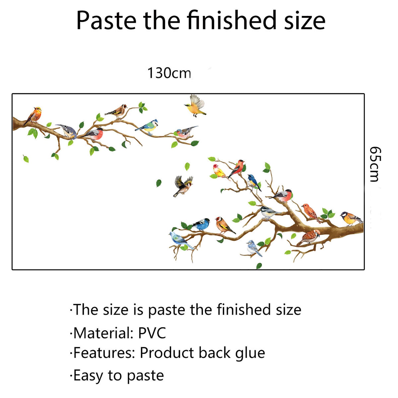 8pcs 130cm Removable Wall Stickers Birds on Tree Branch Wall Decor Decal Home