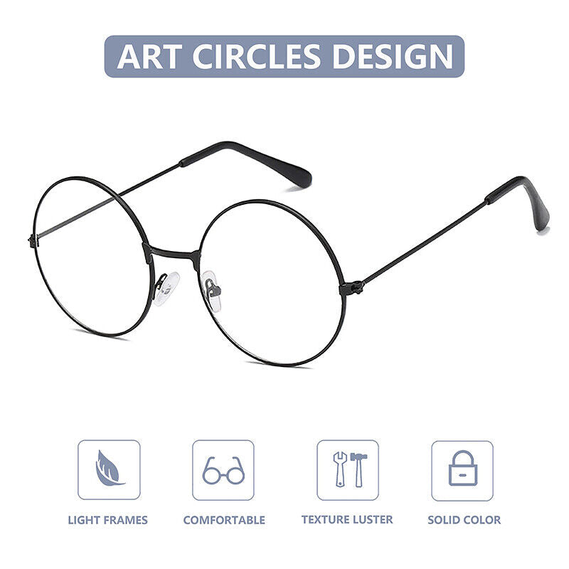 Unisex Round Metal Frame Clear lens Glasses