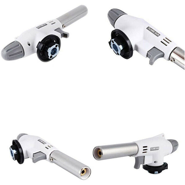 Introducing the 17.5CM Gas Torch in a sleek white and silver design, perfect for various applications such as baking, camping, kitchen use, welding, and hiking.