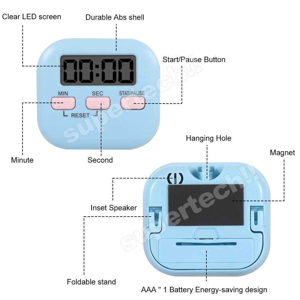 Kitchen Timer Digital Alarm Count Down Sport Clock Egg Cook Stick 99min Magnetic