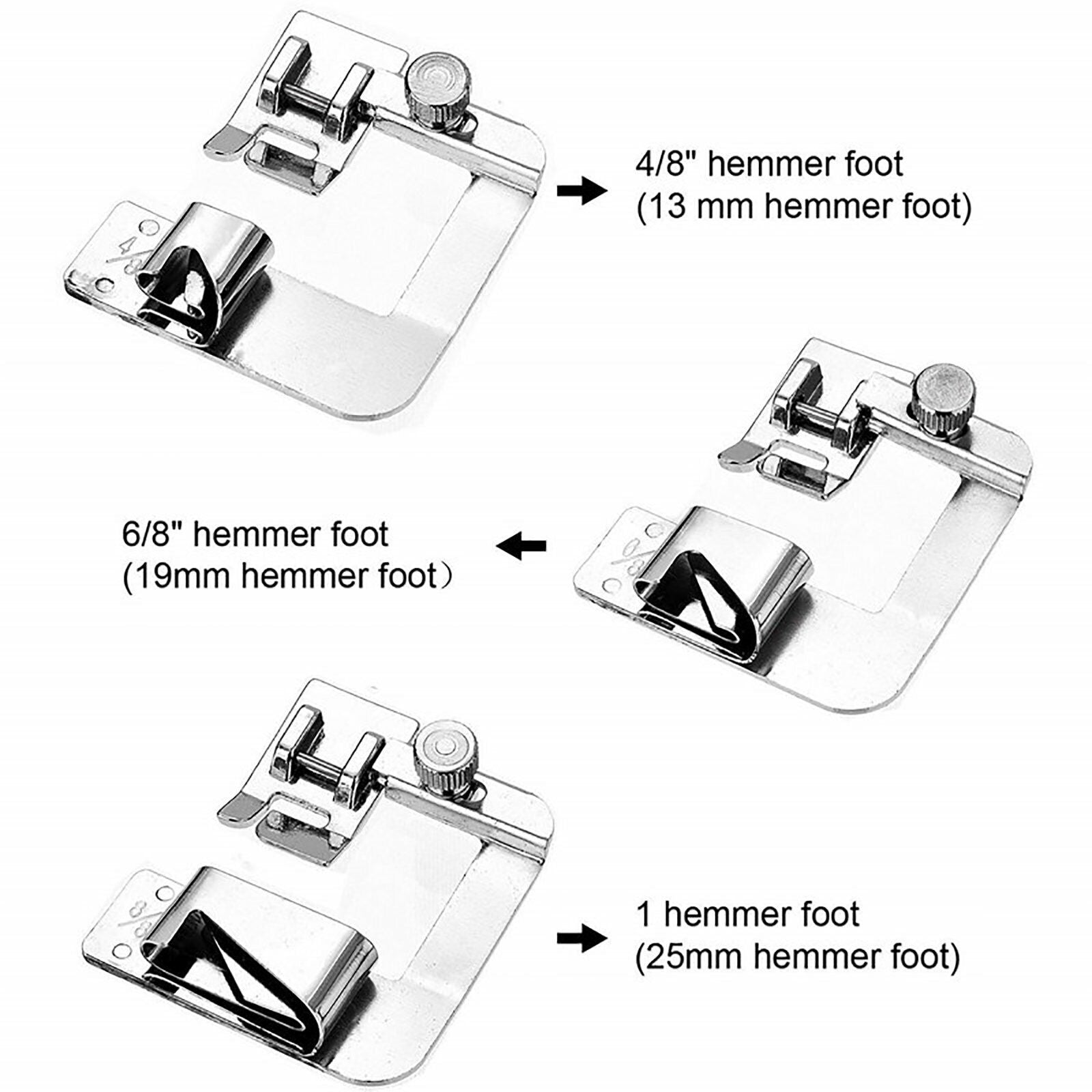 Narrow Rolled Hem Foot Domestic Sewing Machine Snap On Presser Hemmer Feet Set