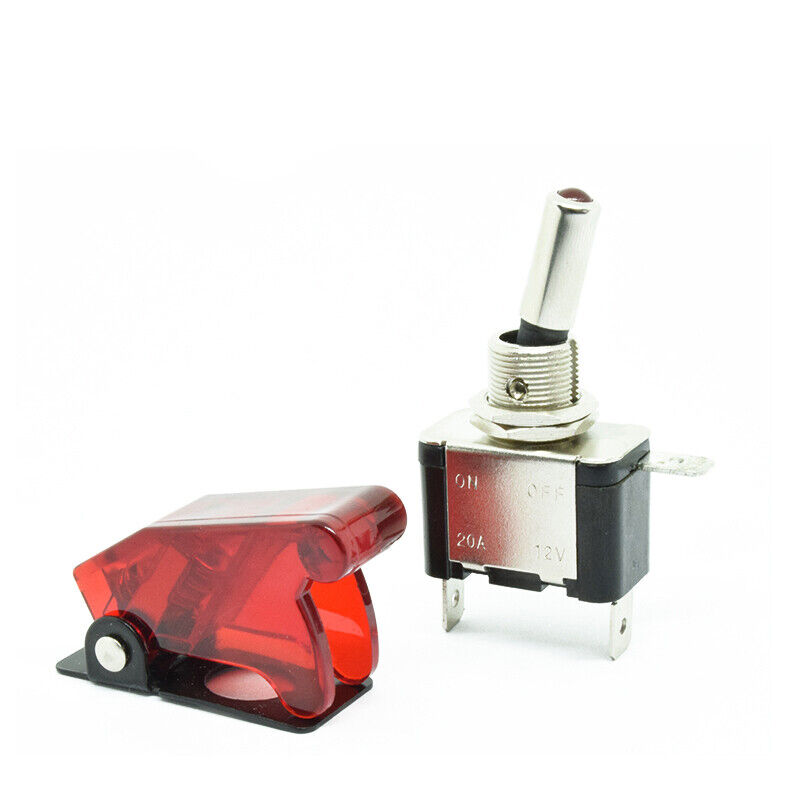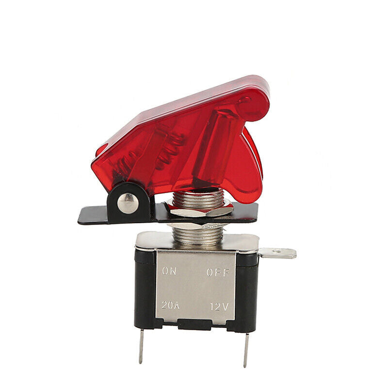 On/Off Toggle Switch RED LED Light w/ Missile Cover Heavy Duty SPST 12V/20A