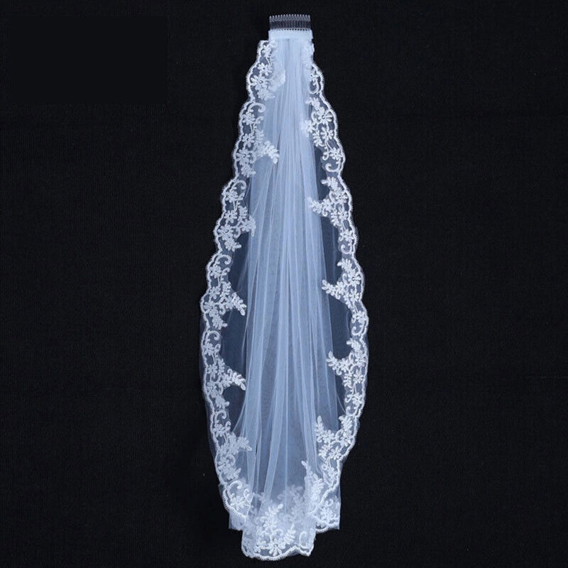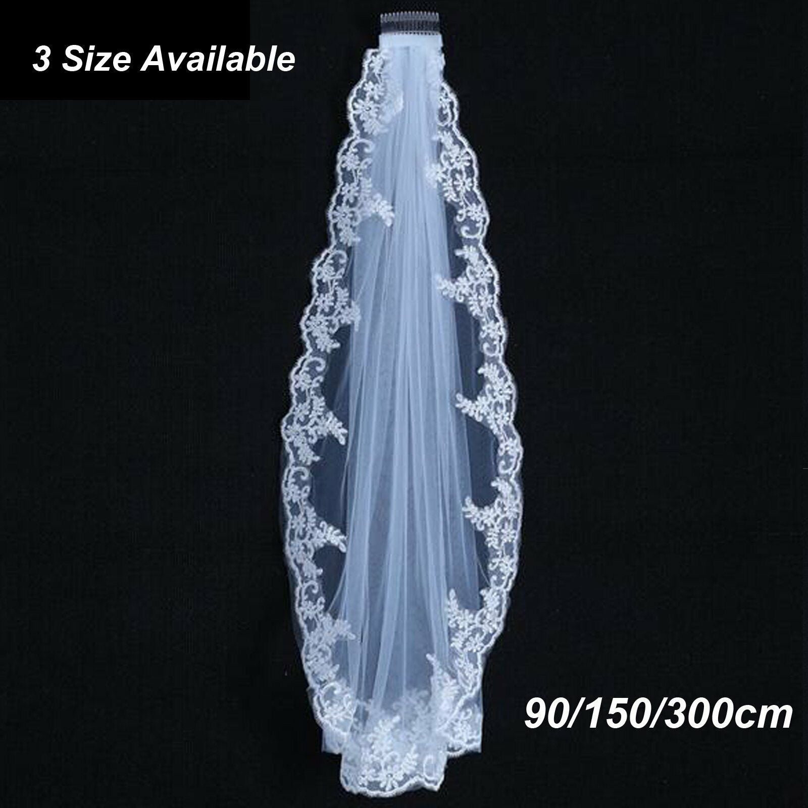 One/Two-tier 90/150/300cm Long Lace White Elbow Length Edge Wedding Bridal Veil