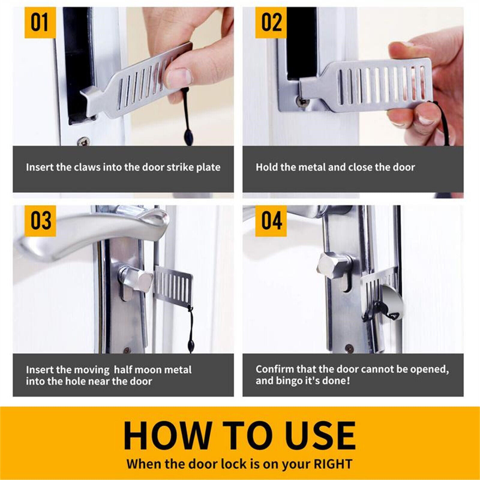 The portable door lock is made of high quality stainless steel material, which is durable and rustproof, practical and convenient to use.