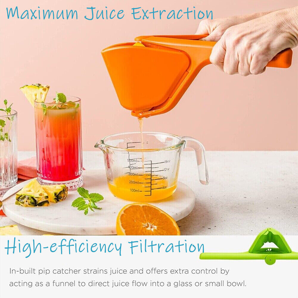 【Food-Grade ABS Material】 This high quality manual lemon juicer is made from high quality, food-grade ABS all over the body. It does not rust, fade or peel due to contact with acidic juice or improper storage.