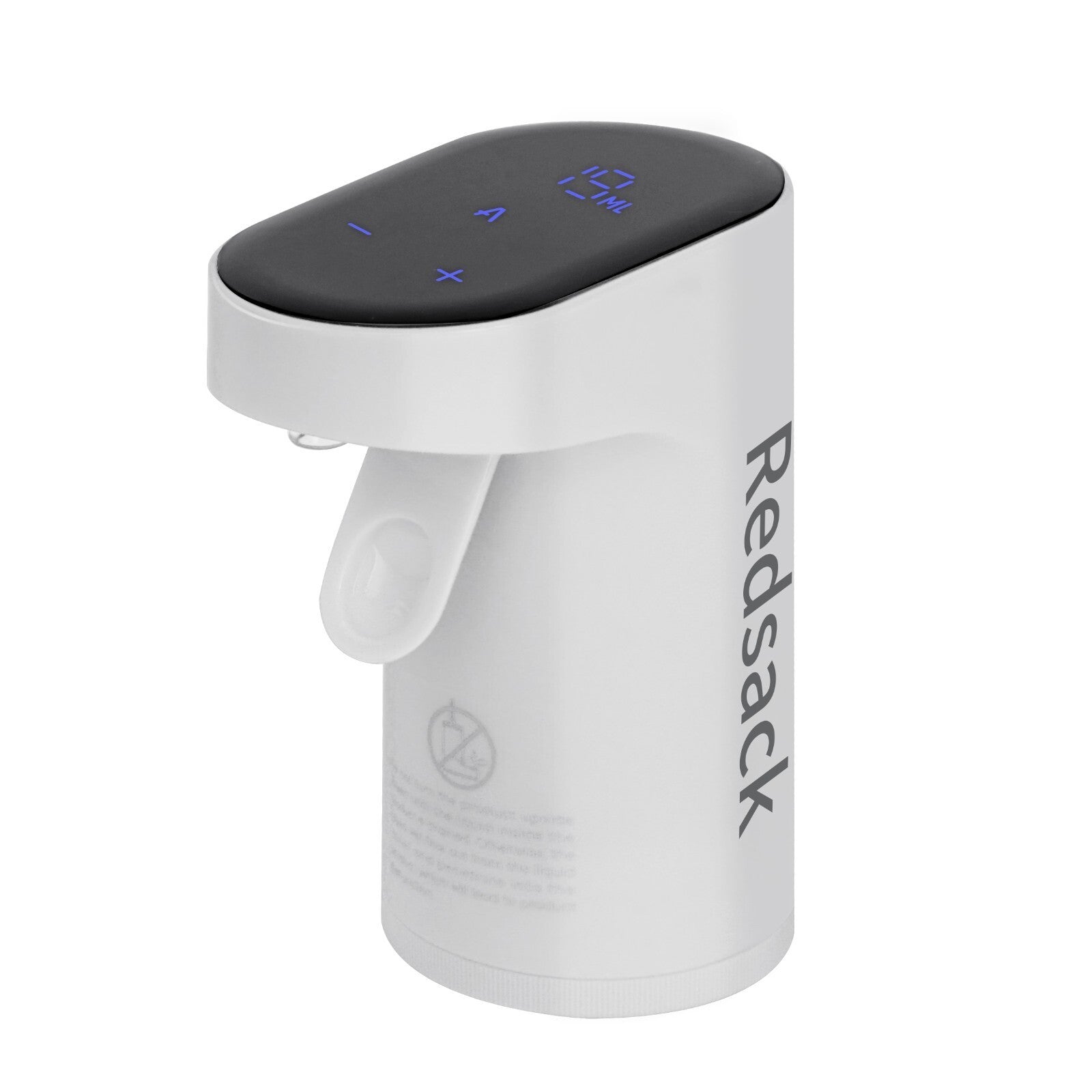 It is rechargeable and features a digital display that shows the amount of liquid dispensed.