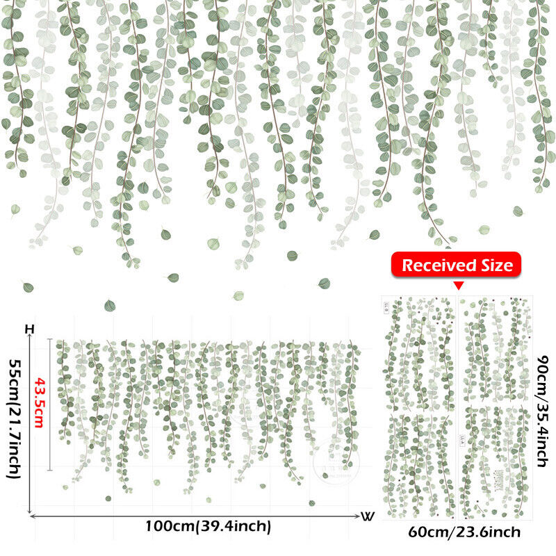 Removable Wall Stickers Nursery Green Foliage Leaves Hanging Vines Decor DIY AU