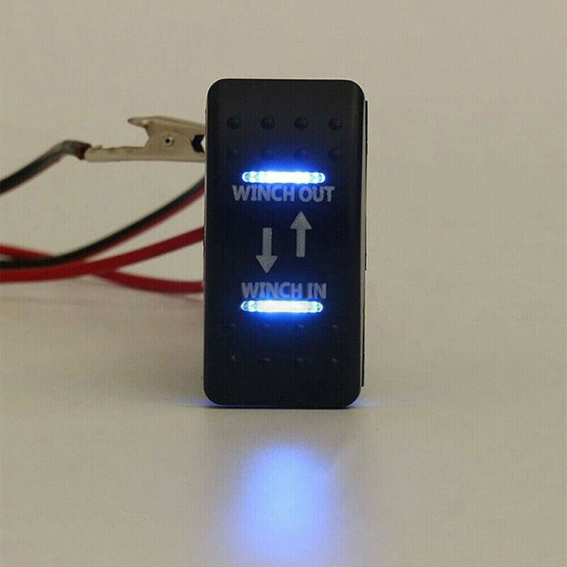 Rocker Switch WINCH IN OUT - Blue - LED 4x4 Boat Caravan Marine 12v 4wd Trailer