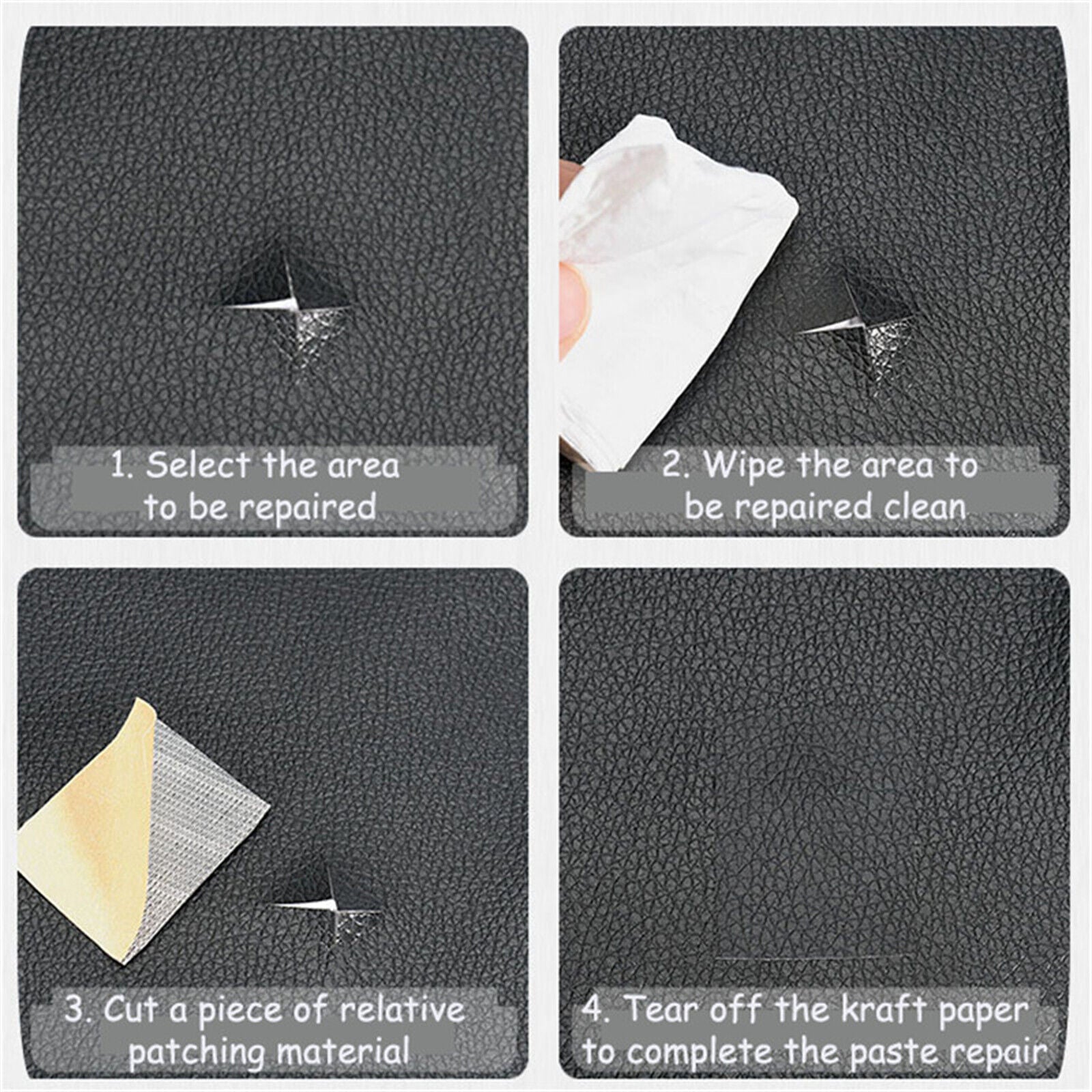 - JUST A SECOND Leather Repair Kit Patch: Peel off the protective film on the back of our Self-adhesive Repair Patch, and then stick it to the leather repair part.