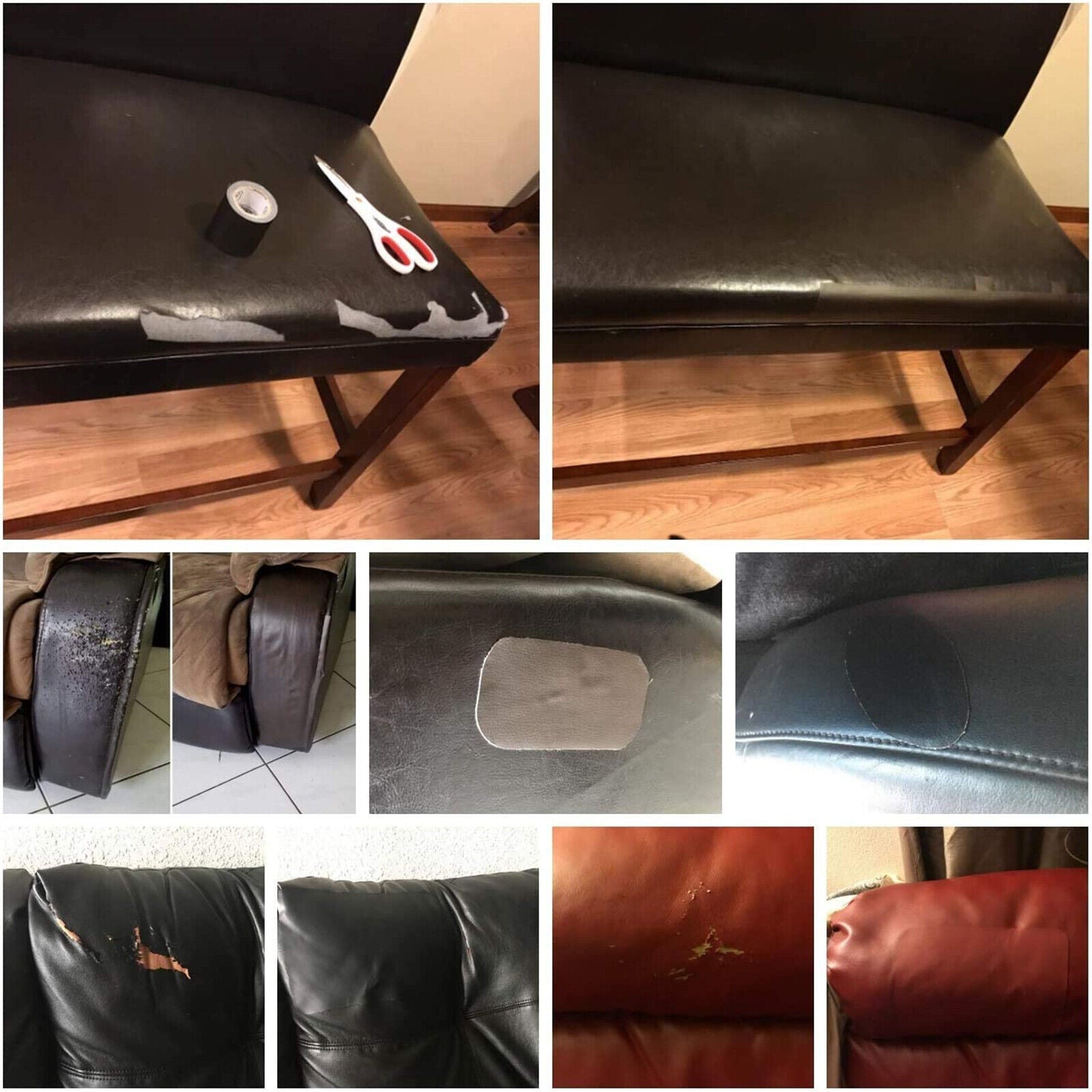 - WIDE APPLICATIONS Leather Repair Kit Patch: Our Self-adhesive Repair Patch are perfect for covering the holes, rips and blots on car seats, sofas, bags, suitcases, jackets, vinyl, and other leatherware.