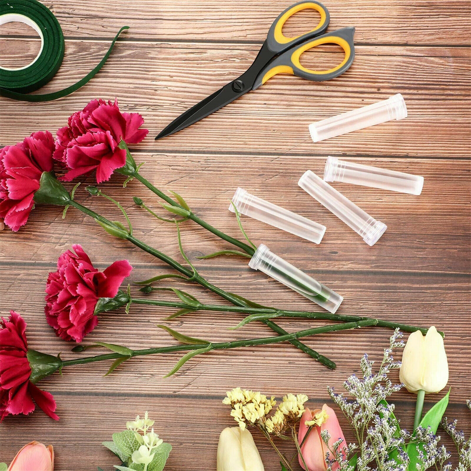 - Plastic tube and soft cap. Good accessory for roses, carnations, gerbers, pompoms, chrysanthemums, and all fresh flowers.