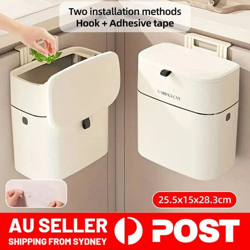 Wall Mounted Hanging Waste Bin with Lid Household Cabinet Trash Can Cr
