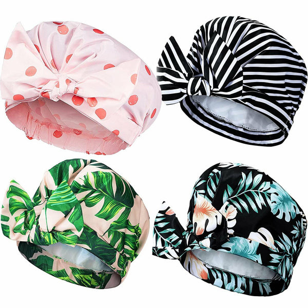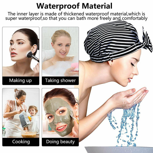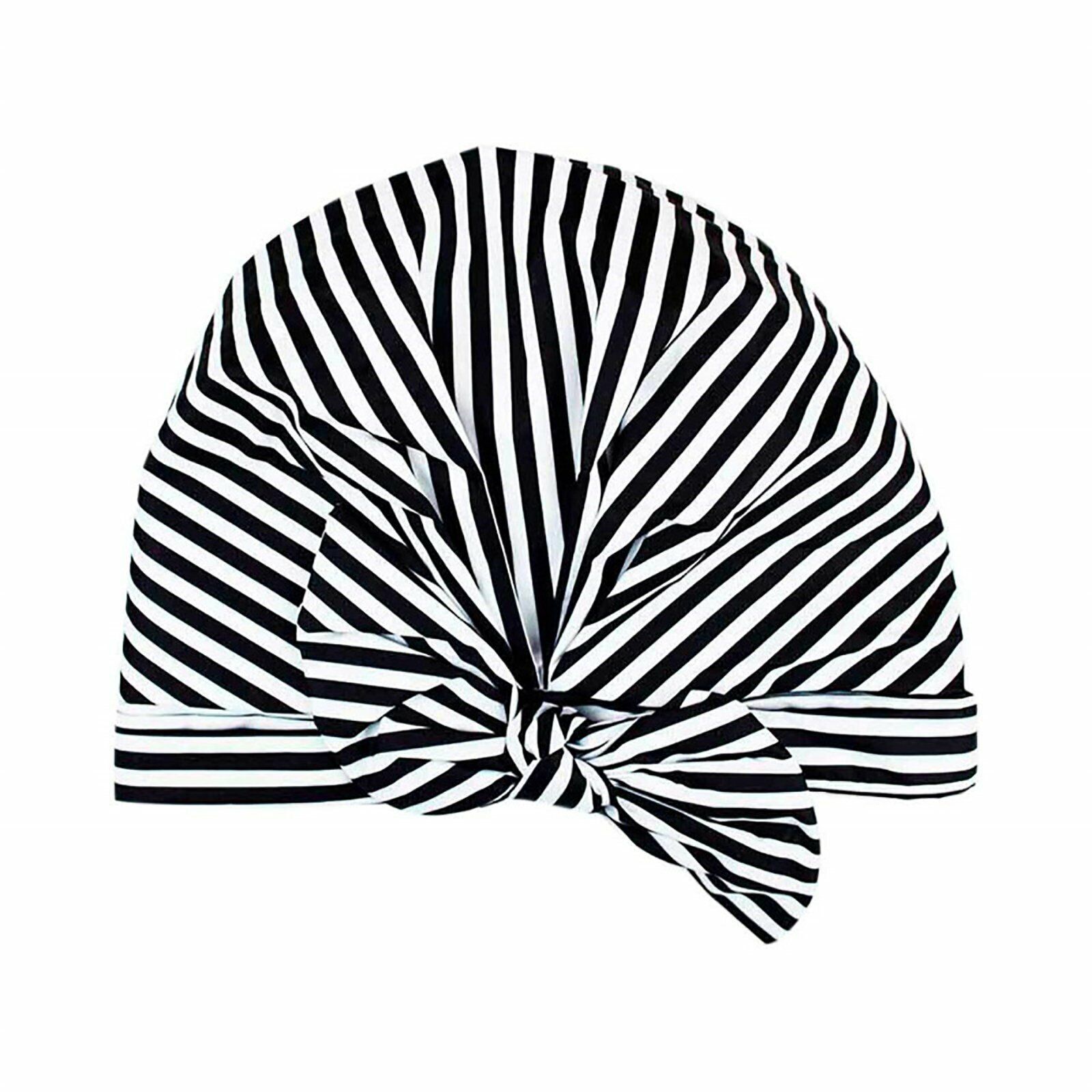 - The cute shower cap design is adorable with the black and white stripes print, bow, and turban appearance.